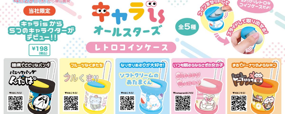 2026年4月23日「キャラis」発の5つのキャラクターがカプセルトイに初登場 ちょっぴりレトロな「キャラisオールスターズ レトロコインケース」を4月29日(水・祝)より「かぷえぼ」にて展開開始!