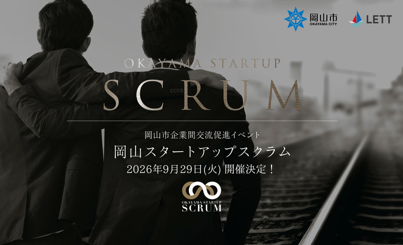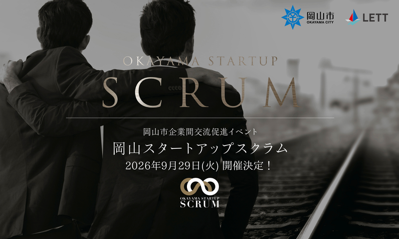岡山市は昨年度に続いて『岡山スタートアップスクラム』の開催を決定し、 LETT株式会社が運営をサポートすることをお知らせいたします。 昨年度の運営メンバーが中心となり、岡山におけるイノベーションエコシステムの魅力発信とさらなる熱量拡大に貢献してまいります。なお、『岡山スタートアップスクラム2026』は、2026年9月29日(火)岡山コンベンションホールにて実施予定です。
