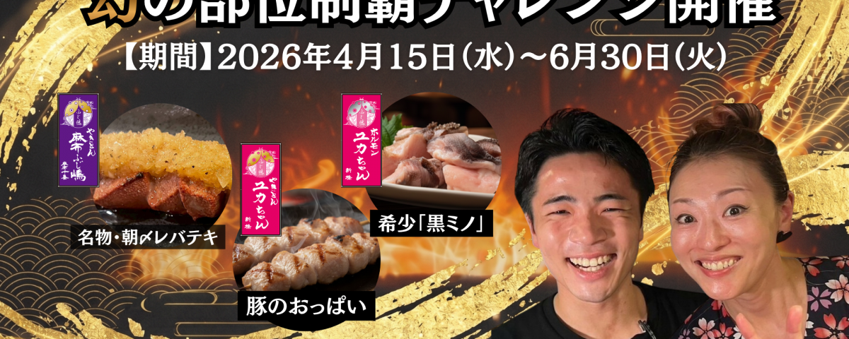 『豚一筋17年。価格以上のこだわりで無限の感動と、あふれる笑顔を』をコンセプトに、やきとん・豚ホルモン焼きに特化した飲食店ブランド【ふじ嶋グループ】(麻布ふじ嶋本店/やきとんユカちゃん/ホルモンユカちゃん)を展開する株式会社Infinity8(東京都港区、代表取締役:藤嶋健一)は、2026年4月15日(水)より、グループ全3店舗を巡る横断企画「豚の極みスタンプラリー」を「幻のメニュー制覇チャレンジ」としてリニューアルして再始動いたしました。