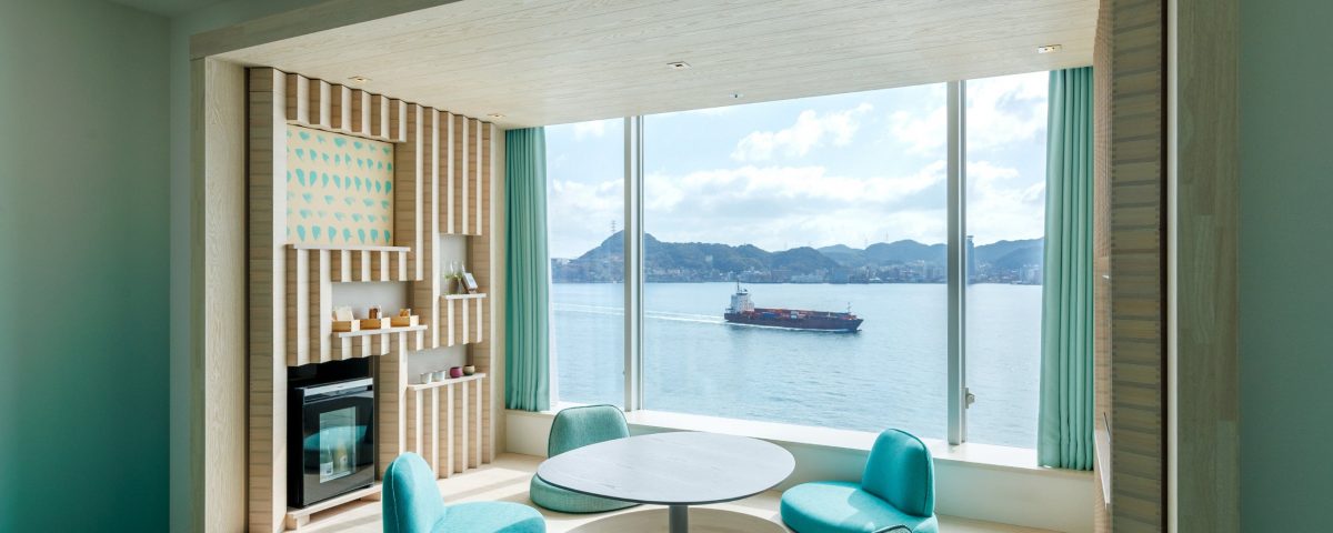 「海峡のデザイナーズホテル」がコンセプトの「リゾナーレ下関」に、2026年4月29日、ふぐと日本酒で“至福”のひとときを過ごせるコンセプトルーム「ふく酒ルーム」が誕生します。ふく酒ルームには、創業100年の老舗酒蔵「下関酒造」とコラボレーションしたオリジナル日本酒に加え、お酒に合わせてセレクトしたおつまみや酒器を用意。リビングには、日本酒の枡を積み上げたデザインウォールや、ふぐをモチーフにしたアートパネルを設えました。掘りごたつで地酒を味わったり、「ふくトランプ」で遊んだり、団らんしたりと、家族や友人と一緒に“ふく”と日本酒を楽しみ尽くせる空間です。