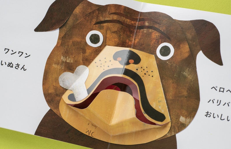 ページを開け閉めすると、ポップアップのしかけで、どうぶつたちの口がモグモグ、ムシャムシャと動きます。何度も繰り返して遊べ、親子での読み聞かせにもぴったりです。
