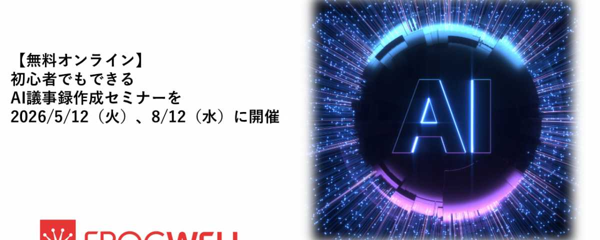 フロッグウェル株式会社は、AIを活用して議事録を自動生成する手順を学べる無料オンラインセミナーを2026年5月12日(火)、8月12日(水)に開催いたします。
