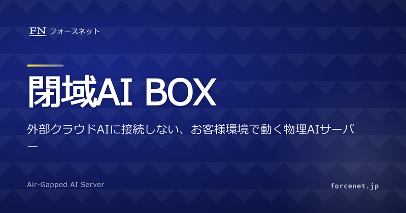 フォースネット株式会社(本社:東京都渋谷区、代表取締役:漆谷 智行、以下「当社」)は、データを外部に送信しない物理AIサーバー「閉域AI BOX」の提供を本日より開始いたします。お客様社内への設置(オンプレミス)と、当社データセンター内の閉域区画への設置のいずれにも対応します。あわせて、第一弾の活用ソリューションとして、当社の0ABJ対応通信サービス「VOICE-LINE」に全通話録音およびAI文字起こし・要約オプションを追加いたしました。