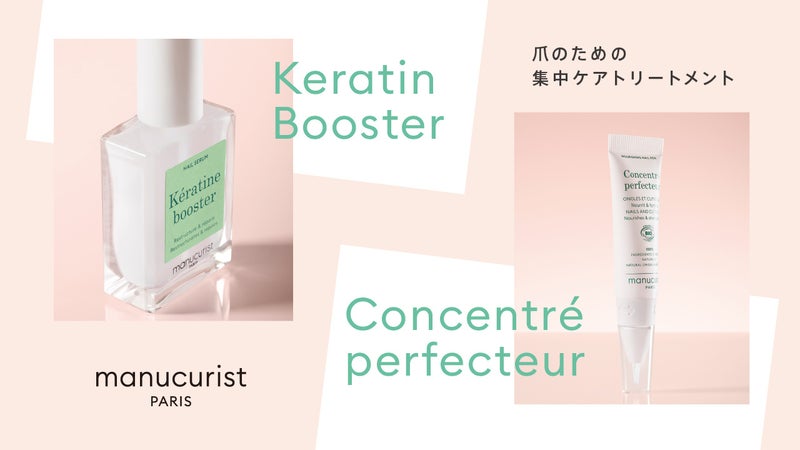 ダメージ(乾燥や摩擦)が気になる爪を集中ケアするネイルトリートメント「ケラチンブースター」、外出先でも手軽にケアできるネイル用美容液「コンセントレートパーフェクター」。