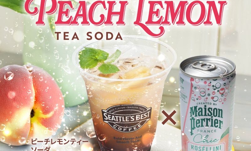 シアトルズベストコーヒーが、メゾンペリエ シック ロゼリーニを使用した「ピーチレモンティーソーダ」を期間限定販売!