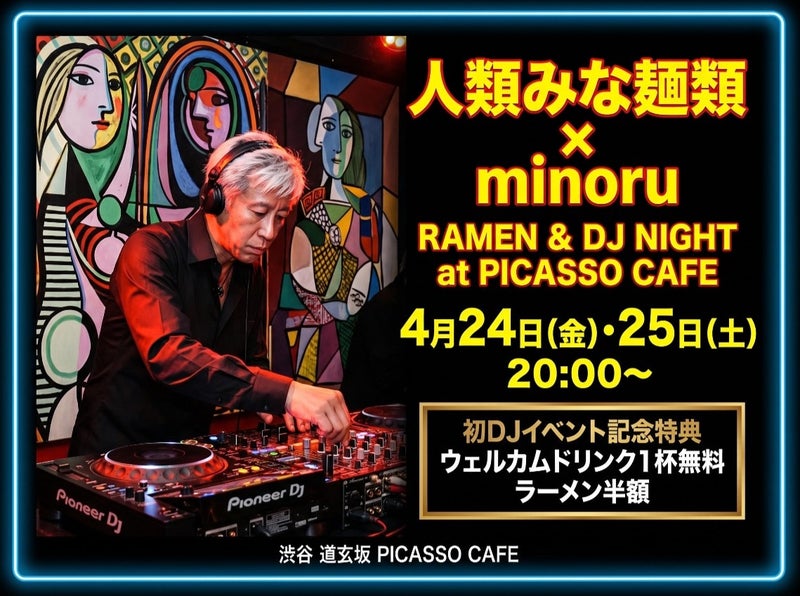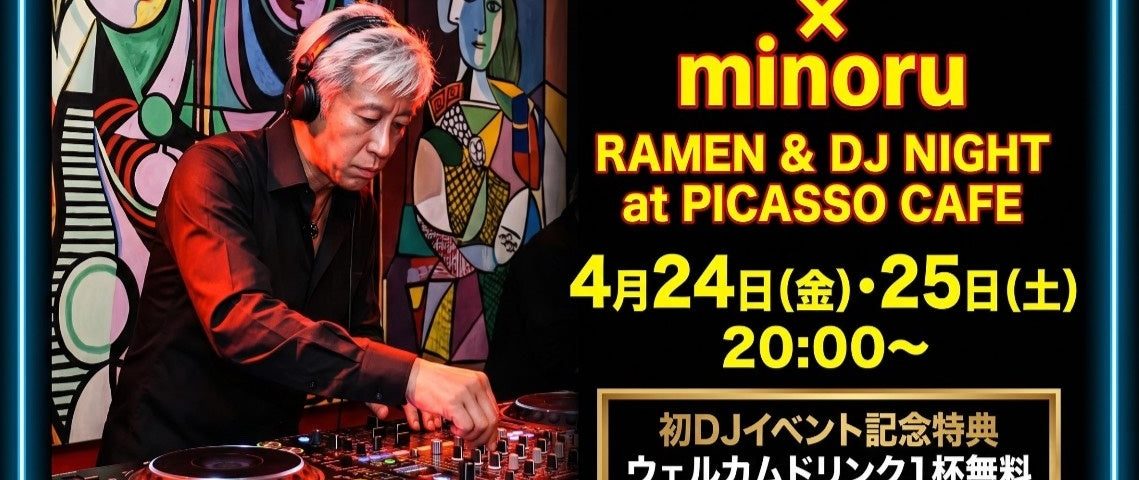 2026年4月22日ラーメン店にDJ界のレジェンドが降臨。「人類みな麺類」が手掛ける渋谷「Picasso Cafe “Cafe Ramen” 」にて、4/24・25に「RAMEN & DJ NIGHT」開催決定!