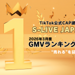【1位獲得】S-LIVE JAPAN、TikTok公式CAP認定ライバー事務所ランキングで首位(2026年3月度)