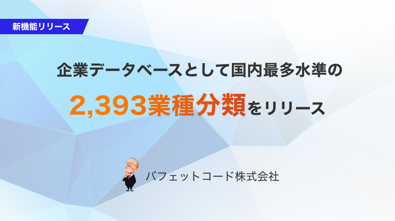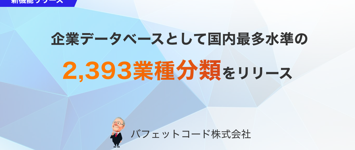 バフェットコード株式会社(本社: 東京都目黒区、代表取締役: 福田 智宏)は、2026年4月15日に、企業分析データベース「バフェット・コード」の業種分類を根本から再構築し、国内最多水準となる2,393種類へと刷新しました。