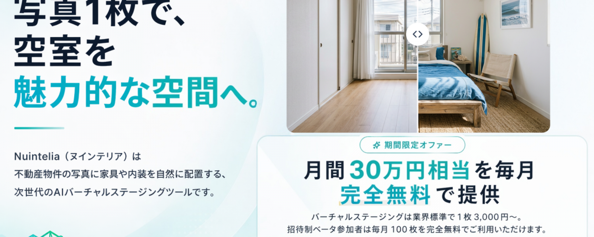 2026年4月22日写真1枚で空室を即モデルルーム化。不動産会社向けAIバーチャルステージング「Nuintelia(ヌインテリア)」β版提供開始