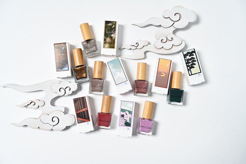 本シリーズは、出雲の風景や文化から着想を得た既存の人気水性ネイル7色の特別パッケージと、新商品「ANDIZUMO アロマオイル お浄め」で構成されています。