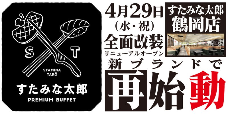 2026年4月23日焼肉、寿司食べ放題の「すたみな太郎 鶴岡店」が4/29(水・祝)全面改装オープン!「すたみな太郎 PREMIUM BUFFET 鶴岡店」として再始動!