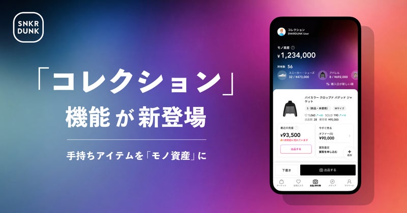 「SNKRDUNK(スニーカーダンク)」(以下、スニダン)を運営する株式会社SODA(本社:東京都渋谷区、代表取締役CEO:内山 雄太、以下SODA)は、2026年4月22日(水)より、持ちモノの相場をリアルタイムに把握できる新機能「コレクション」の提供を開始いたします。