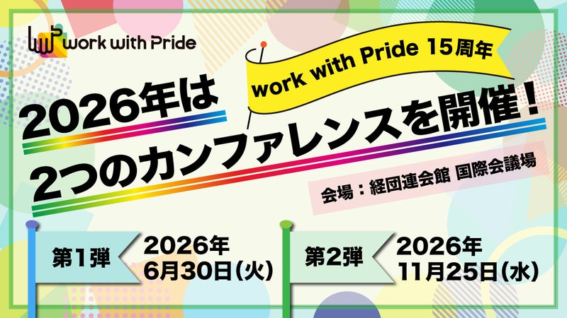 日本国内の企業・団体のLGBTQ+等の性的マイノリティ(以降、LGBTQ+)に関するダイバーシティ・マネジメントの促進と定着を支援する一般社団法人work with Prideは、2026年に設立15周年を迎えます。この節目を記念し、毎年1回開催している「work with Pride」カンファレンスを、2026年は特別に年2回開催することを決定しました。