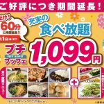 【5/1まで延長決定!!1,099円で至福の60分食べ放題!!】‟ニラックスブッフェ”で人気の45分の食べ放題コース『プチブッフェ』を『15分』延長!コスパ最強・充実の食べ放題を思う存分お楽しみください!