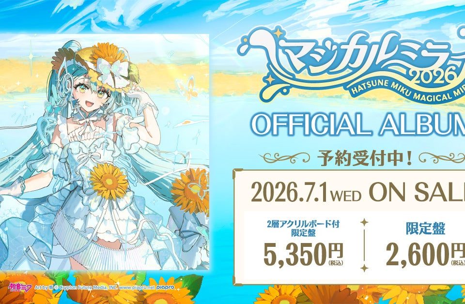 2026年4月23日Published by on 2026年4月23日初音ミク「マジカルミライ 2026」公式CD、2026年7月1日(水)発売に向けて予約受付開始!クリプトン・フューチャー・メディア株式会社(本社:北 […]