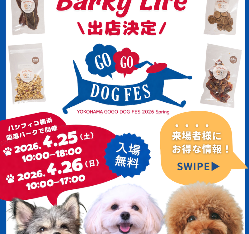 2026年4月23日Published by on 2026年4月23日愛犬と泊まれる本格リゾート「Dokidoggie 油壺Globe」が「Barky Life」イベント限定特典に協賛 ― YOKOHAMA GOGO DOG FES 2026 Spring に出店 ―オリジナル無添加ドッグトリーツブランド「Barky Life」を運営する株式会社VisCreation(所在地:東京都品川区南大井6-16-20 品川水神ビル6階、代表者:藤川 進人、URL:https://viscreation.co.jp/)は、2026年4...