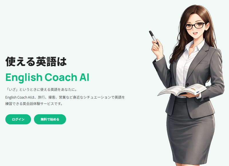 English Coach AIは、旅行、接客、受付、営業、道案内など、実生活...