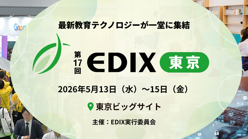 2026年4月23日Published by on 2026年4月23日【取材案内】不登校35万人・教員の精神疾患休職も高止まり。教育現場の崩壊を防ぐ「働き方改革」と「多様な学び」の最前線~第17回 EDIX(教育総合展)東京、5月13日(水)より開催~EDIX実行委員会(企画運営:RX Japan合同会社(本社:東京都中央区、代表執行役員社長:田中岳志))は、2026年5月13日(水)から15日(金)の3日間、東京ビッグサイトにて、日本最大級の教育分野の総合展「第17...